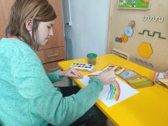 Педагог-психолог центра Неделько Инна Васильевна активно применяет данное направление психотерапии в работе с детьми, в том числе с ограниченными возможностями здоровья (ОВЗ). Арт-терапия, включающая в себя рисование, лепку, аппликацию и другие виды творчества, позволяет специалисту решать целый комплекс задач.